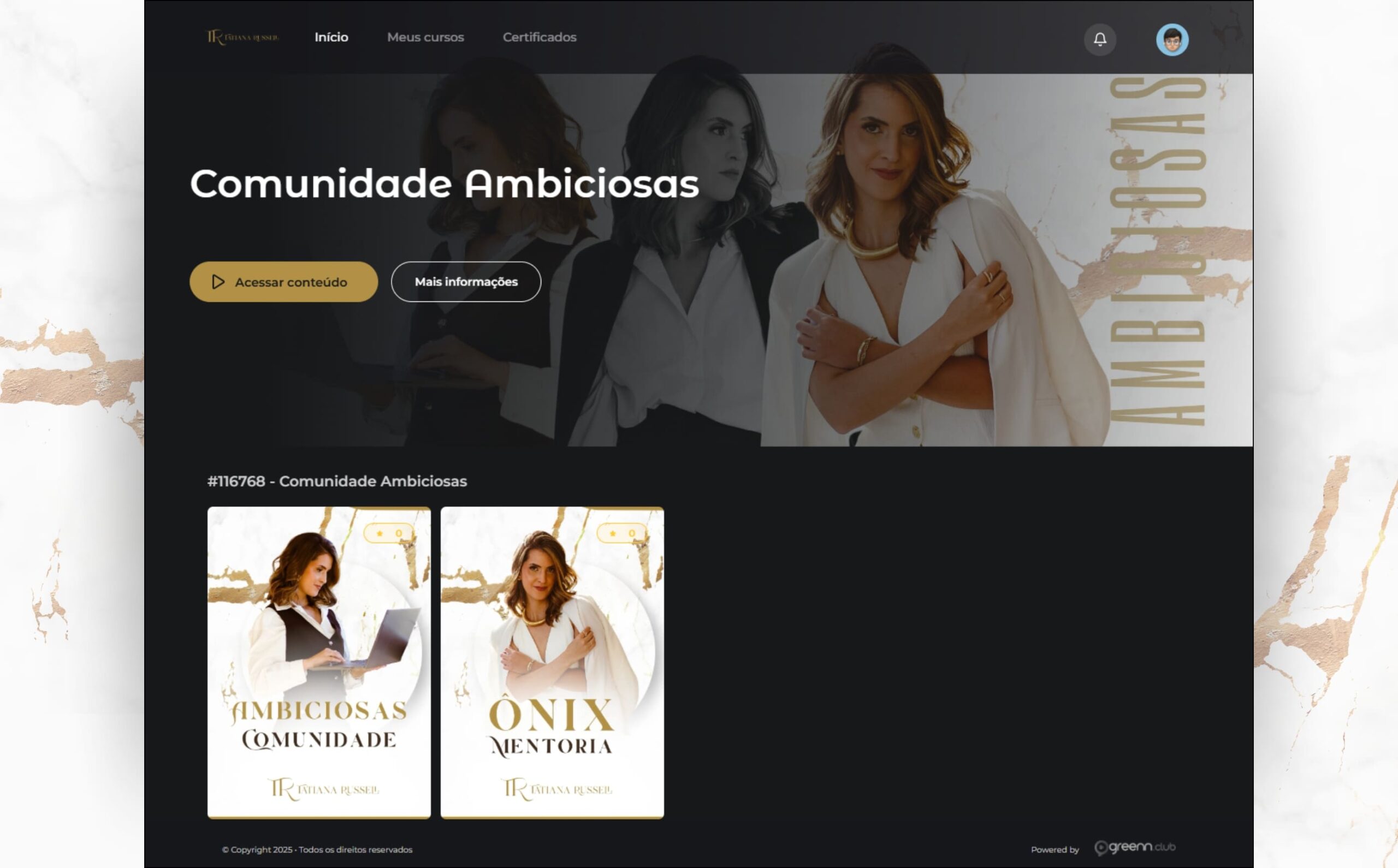 Um espaço seguro e estratégico para tirar dúvidas, trocar experiências com outras mulheres ambiciosas e manter sua energia lá em cima.